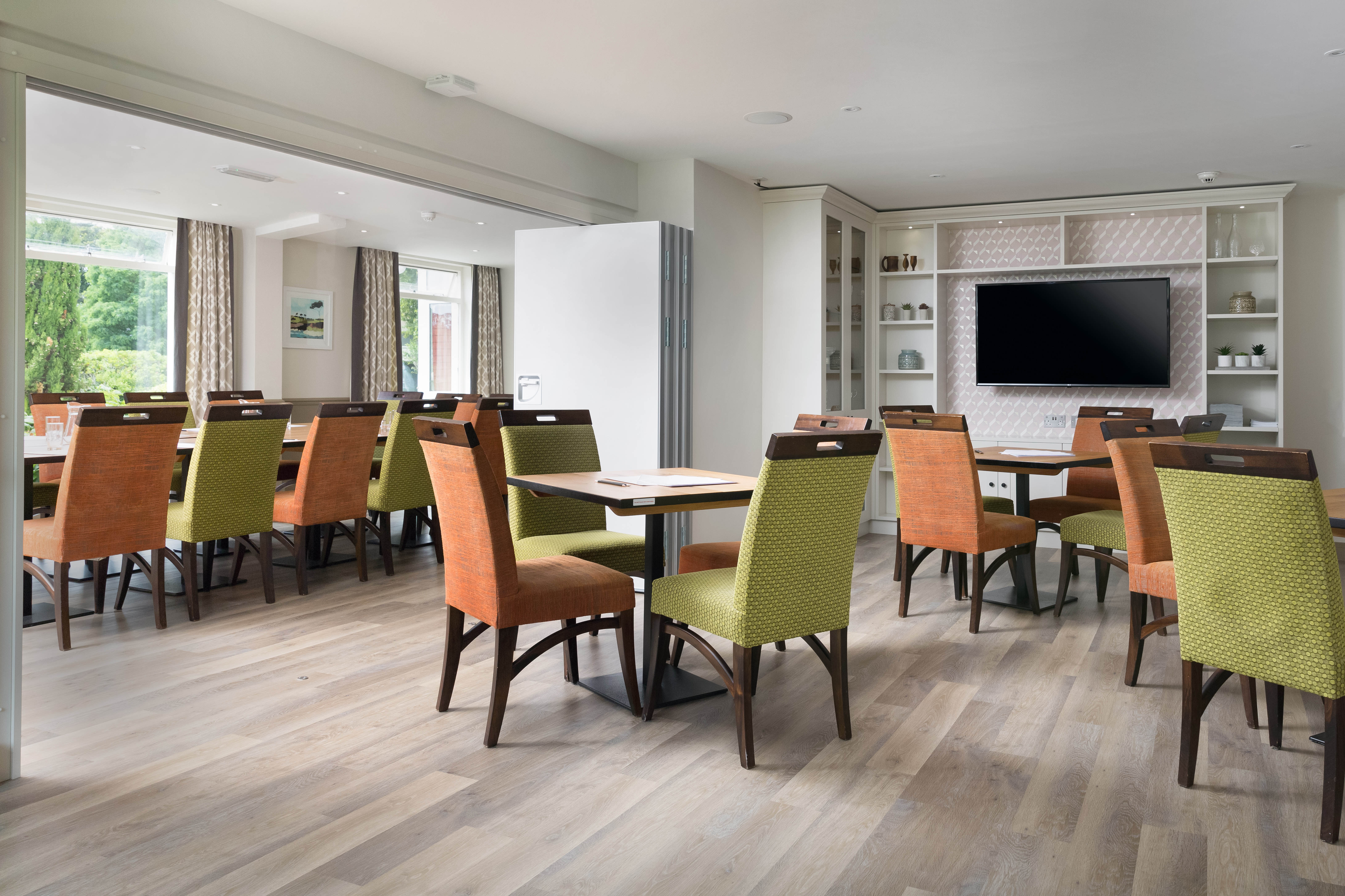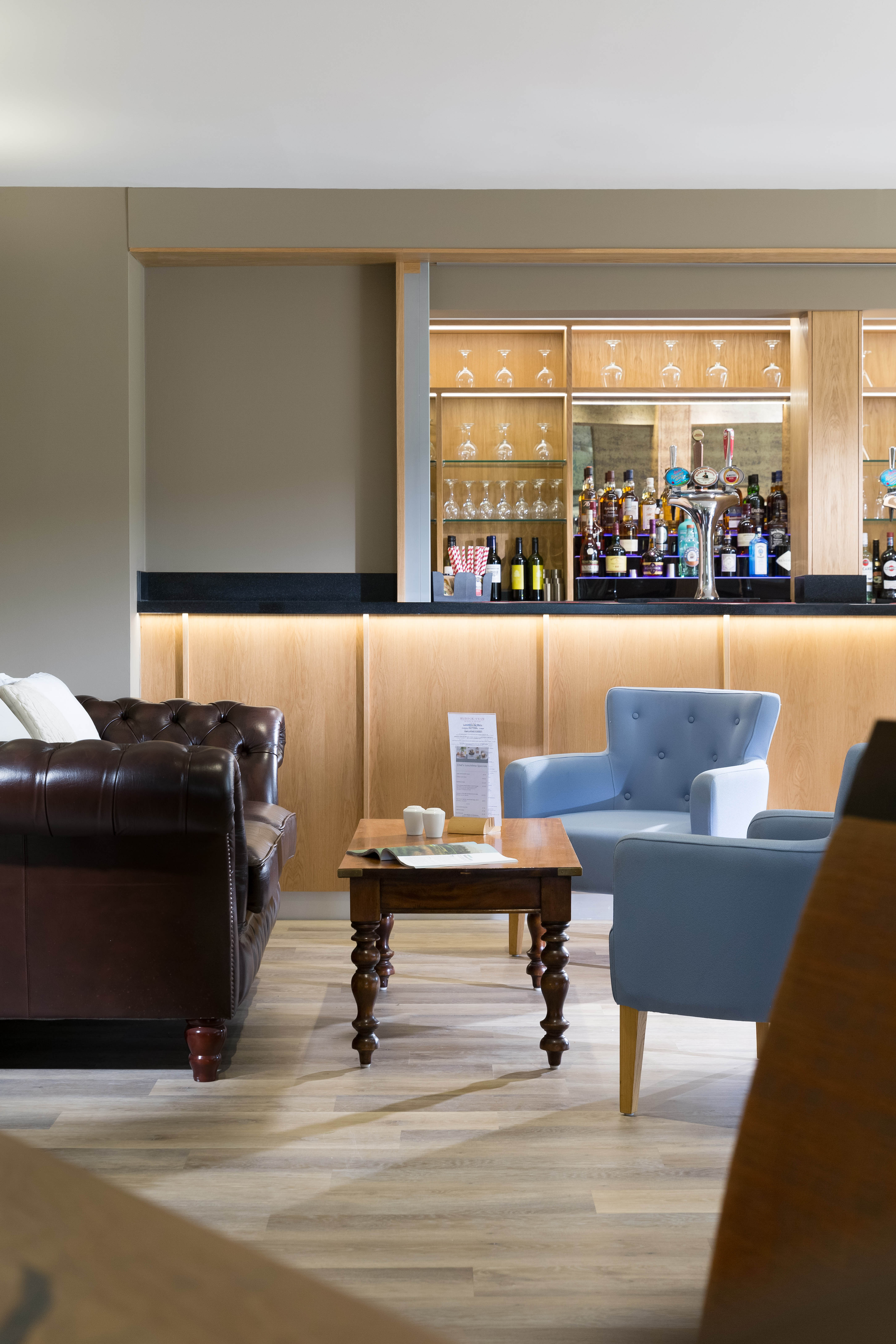 As part of our ongoing design relationship with the hotel, the country and golf club was redesigned to offer greater flexibility for both members and hotel guests. The bar, retail outlet and main lounge were reconfigured to section individual spaces off and to maximise the seating. The interior was designed to offer new facilities for weddings, meetings and conferences. With the design of the new bar, a series of dividing walls were introduced. This allowed sections to be zoned whilst the golf club was still in use.