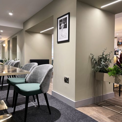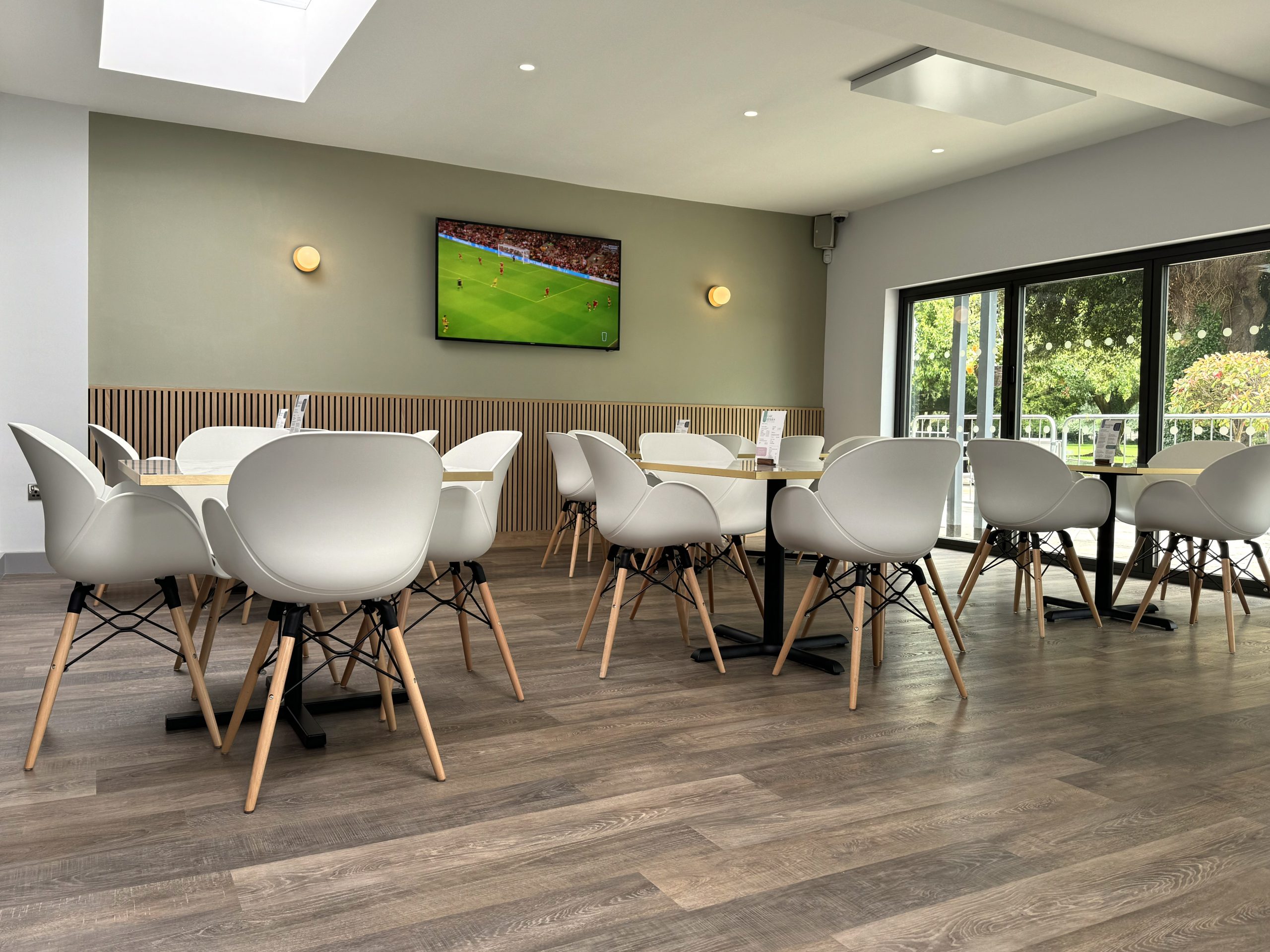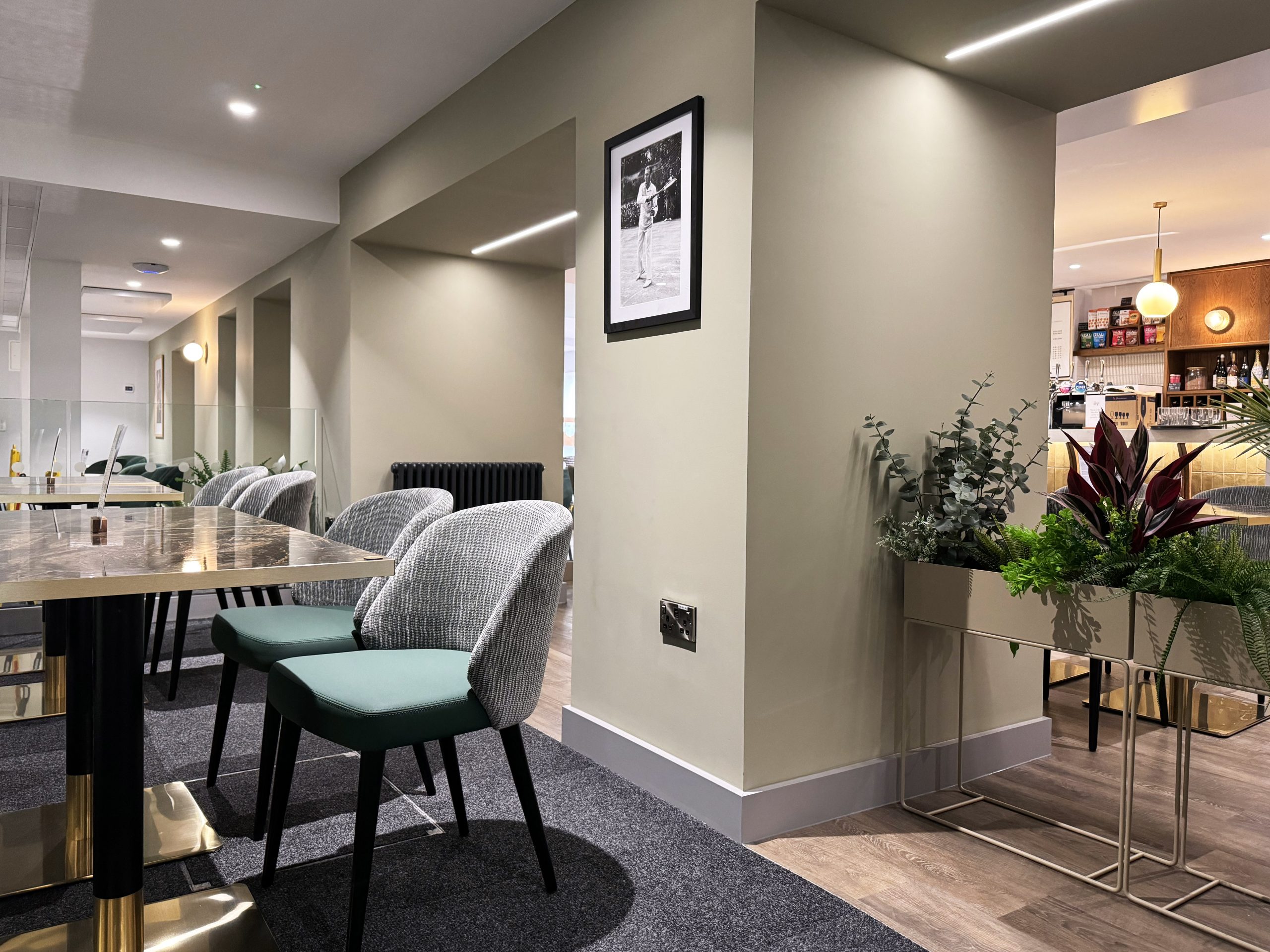 We were commissioned to design a brand-new members’ bar with the goal of creating a modern, multi-functional space that could be enjoyed throughout the day and evening. The vision was to provide an environment where members could unwind, dine, and socialise. The space features a bright and open café-style area with a seamless connection to the outdoors and a seated patio, alongside a dedicated “work-on-the-go” desk space. Additionally, a more refined, adults-only section has been introduced near the newly positioned, stylish bar. Designed to be versatile and adaptable for members at any time of day, the space also includes a bespoke play zone for younger members.