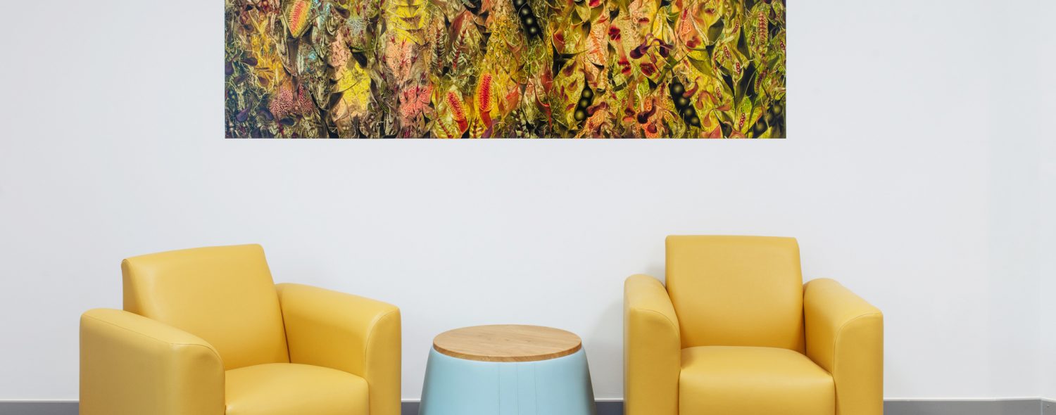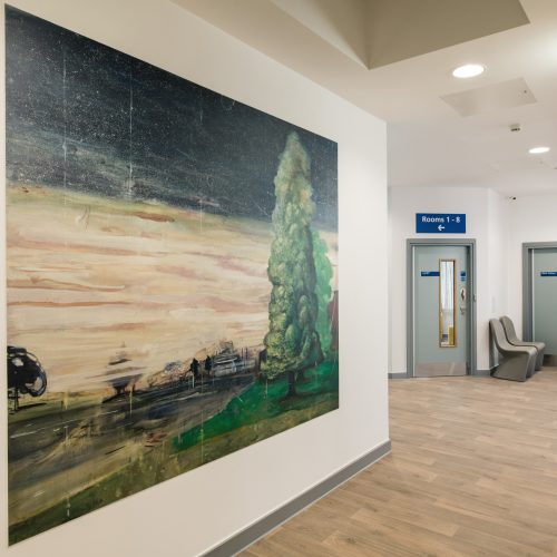 In partnership with Hospital Rooms, our shared vision aimed to transform sterile and unwelcoming spaces into calming and inviting environments. The inclusion of beautiful works of art, carefully curated to complement the tonal colour palette and furniture, plays a pivotal role in achieving this transformation. Photographs by Dom Moore, courtesy of Hospital Rooms.