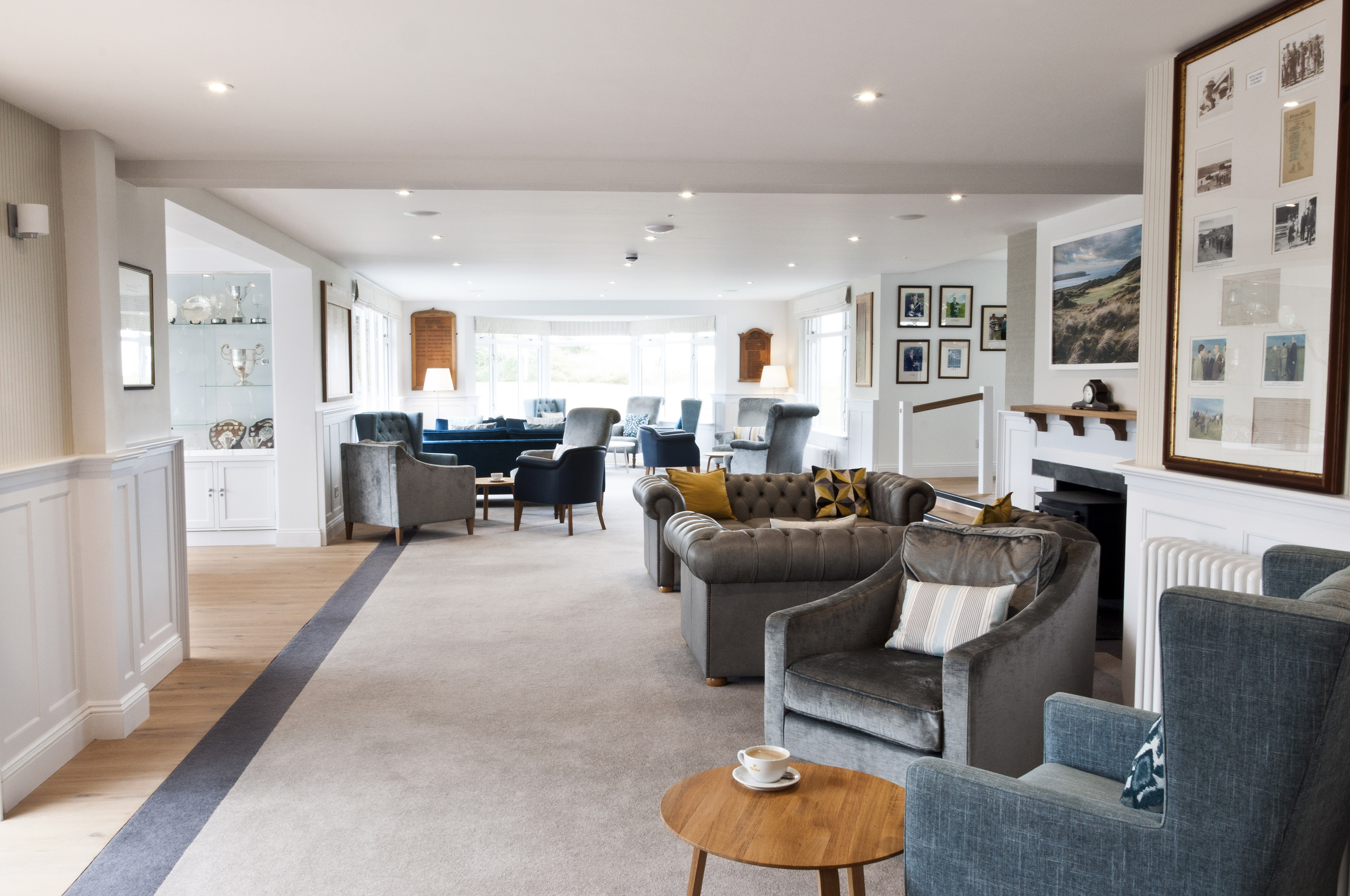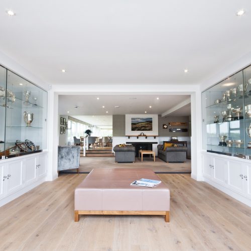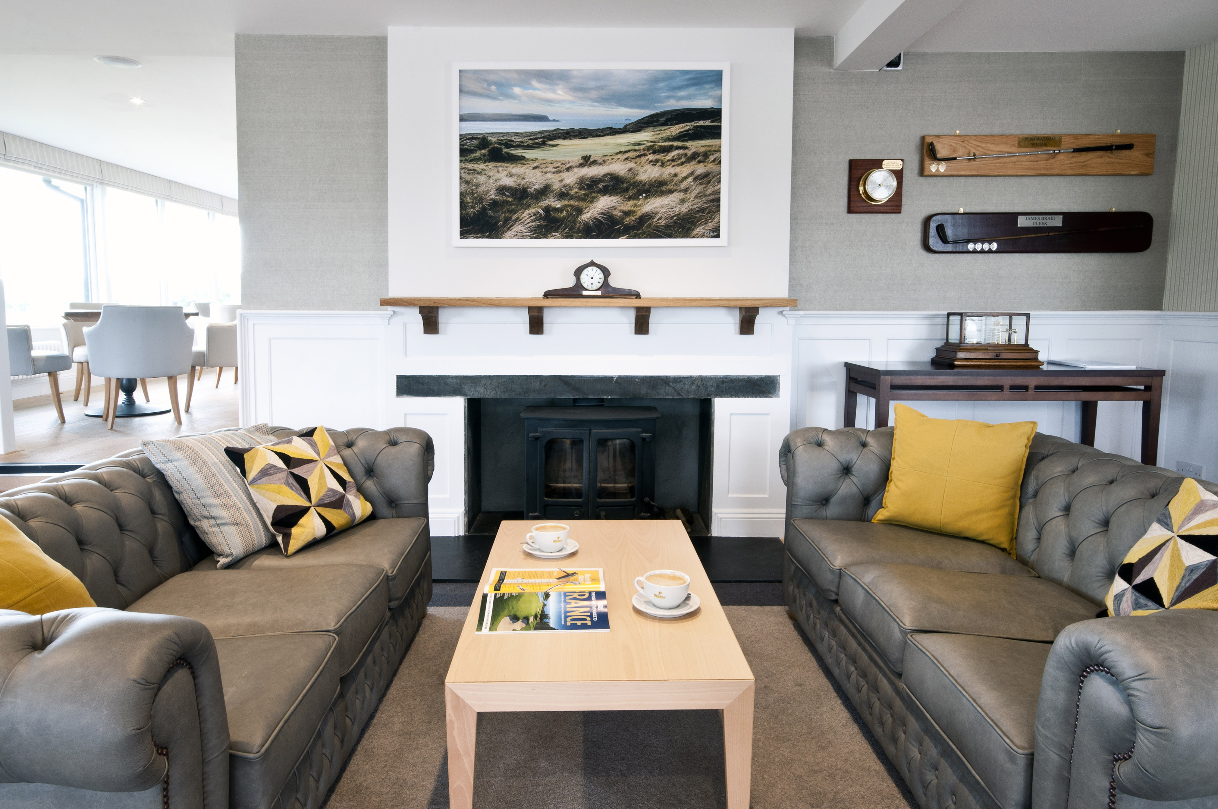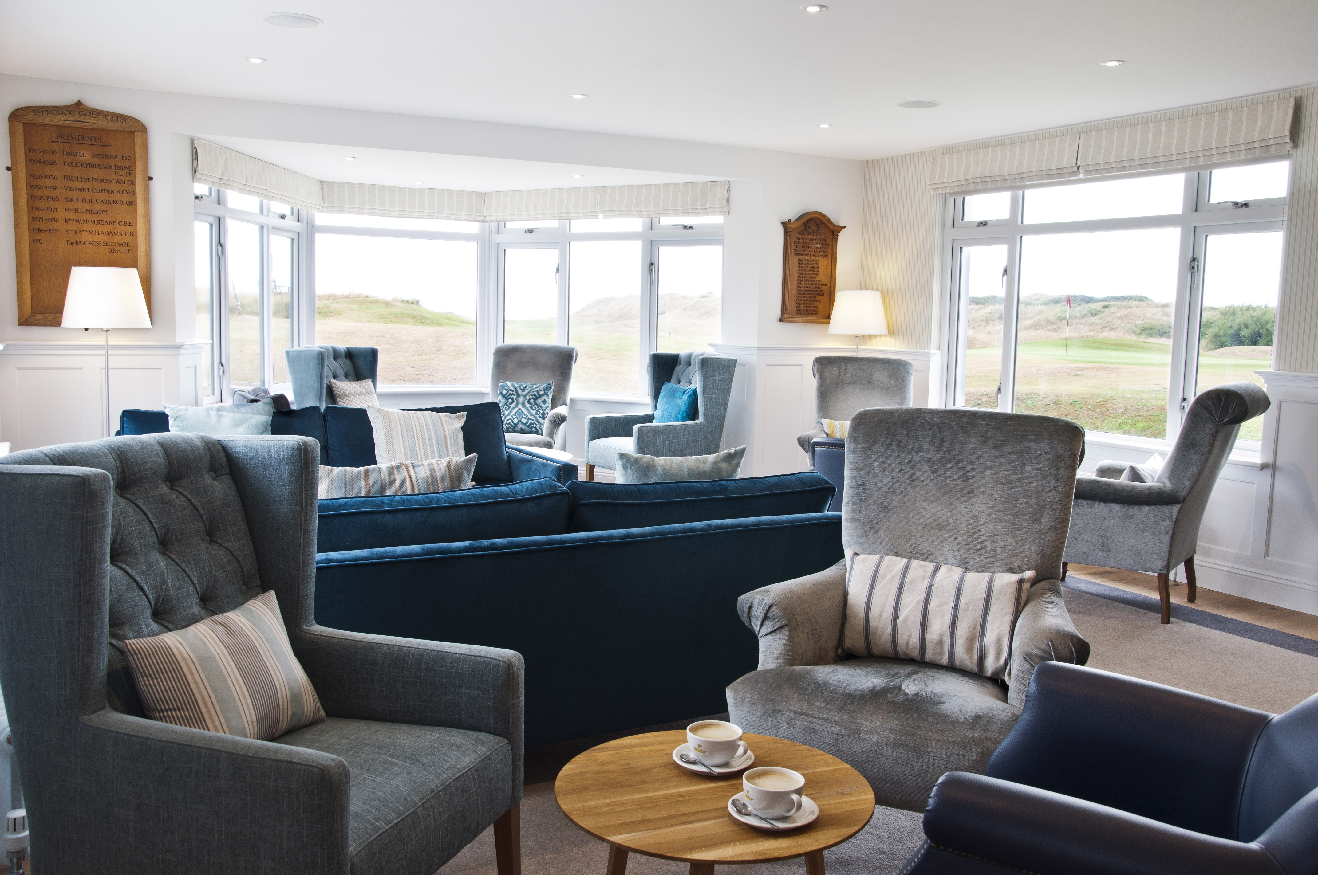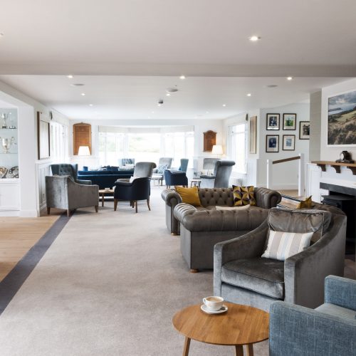 Enodoc Golf Club sits on the North Cornwall coast overlooking the Camel Estuary and the Atlantic Ocean. We were commissioned by the member’s committee to design a new scheme for the existing club house to include the reception, bar and lounge. The aim of the project was to provide a stylish and elegant interior to match the reputation of the magnificent championship courses.