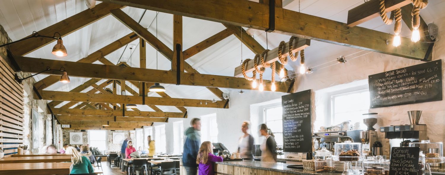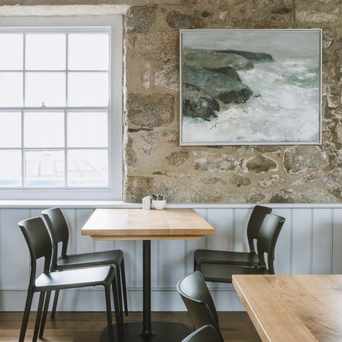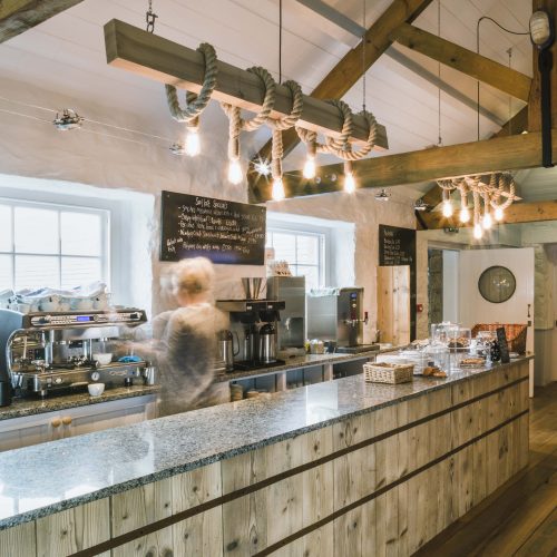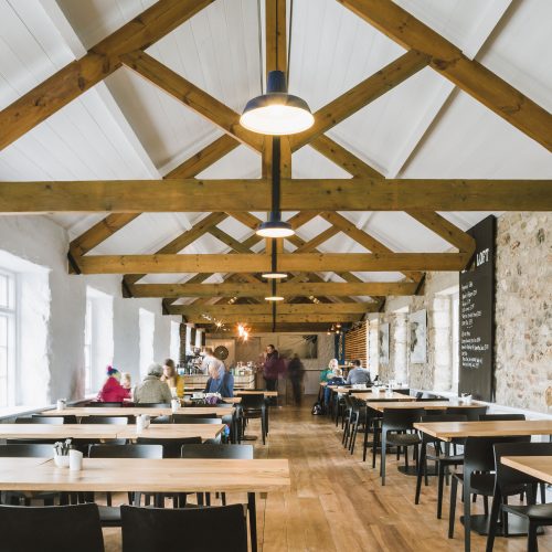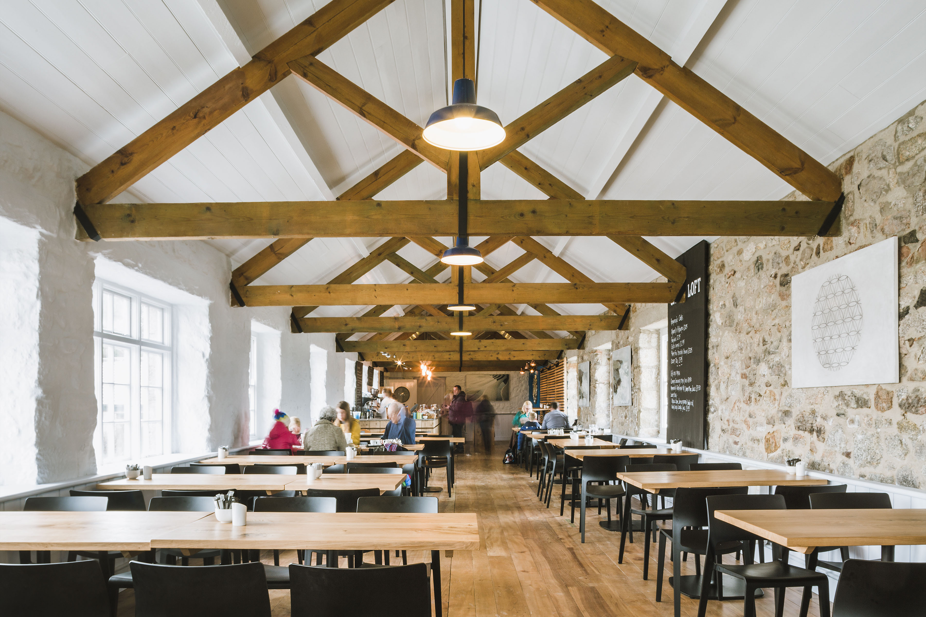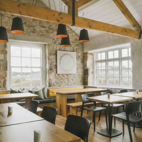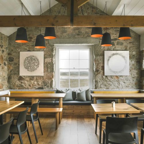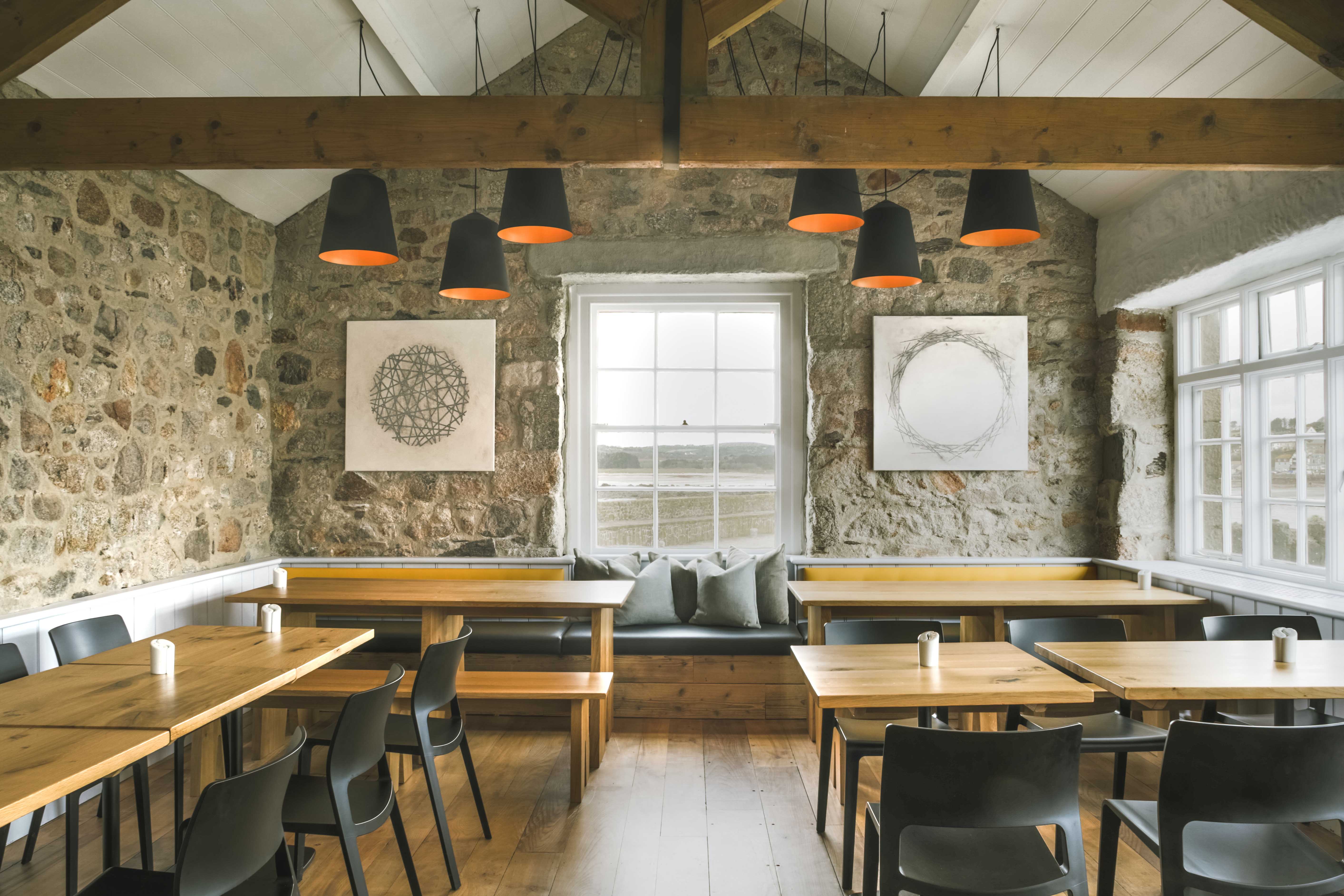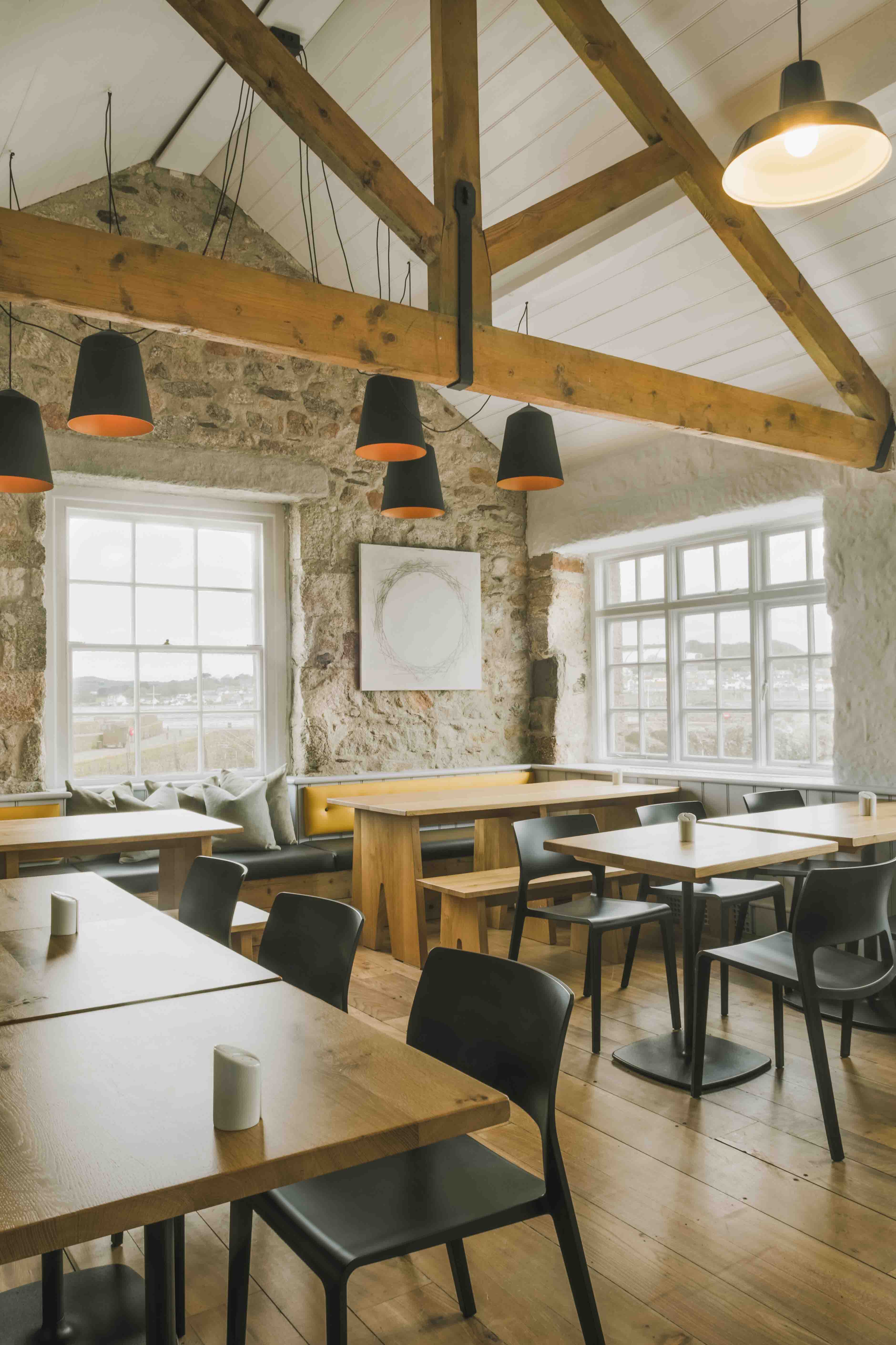 Located within the island’s old sail loft above the harbour, the existing cafe was given a complete new look. We were asked to design a more authentic and honest experience for customers visiting the island. A scheme in keeping with the buildings history, utilising the natural elements of the structure. Firstly we planned the space to create a new layout, repositioned the service counter and rationalised the seating. This important exercise allowed the interior to flow more effectively.
