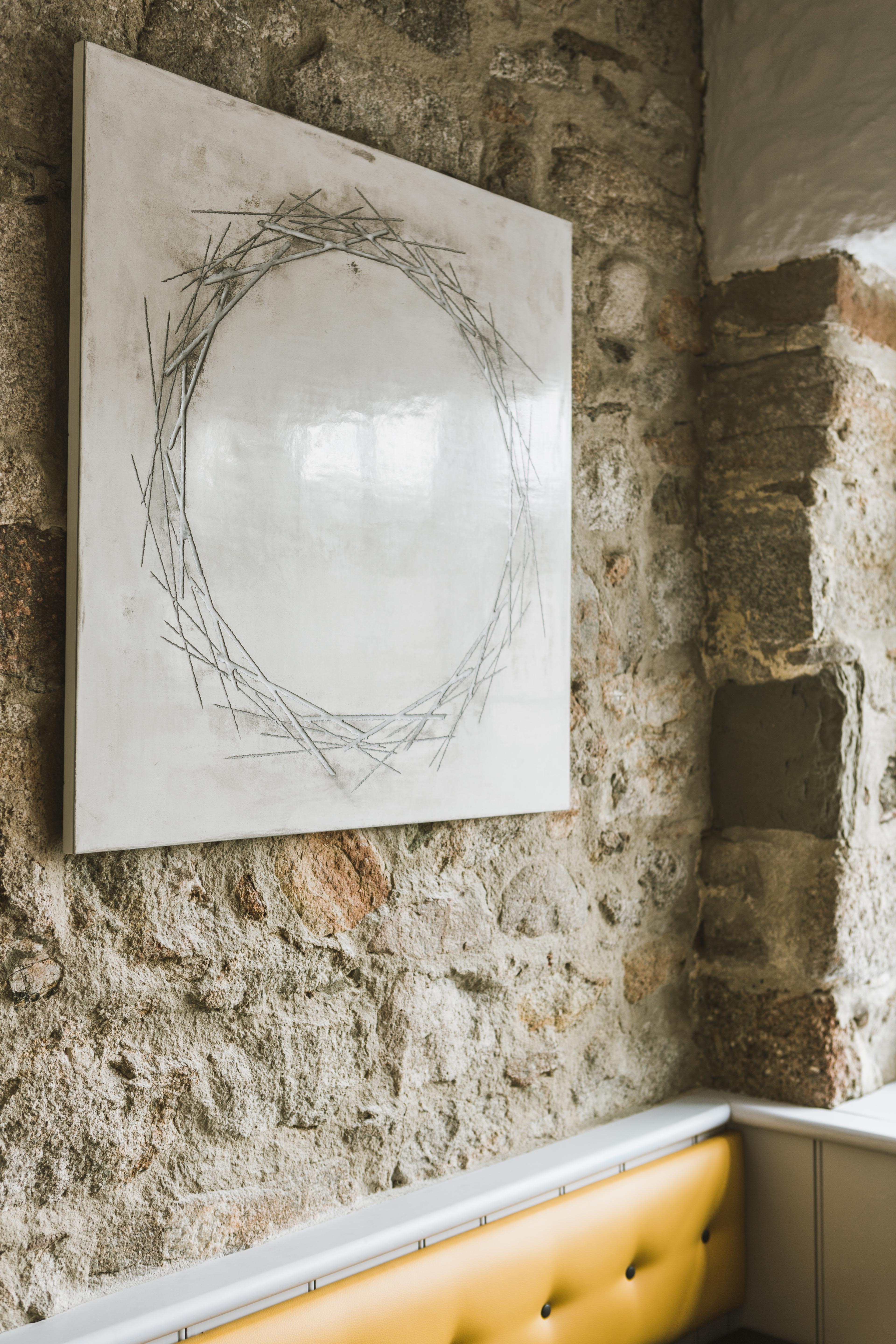 The fabric of the building was deliberately exposed and character oak tables and black chairs complimented the cool blues and whites of the unique historic island setting.
