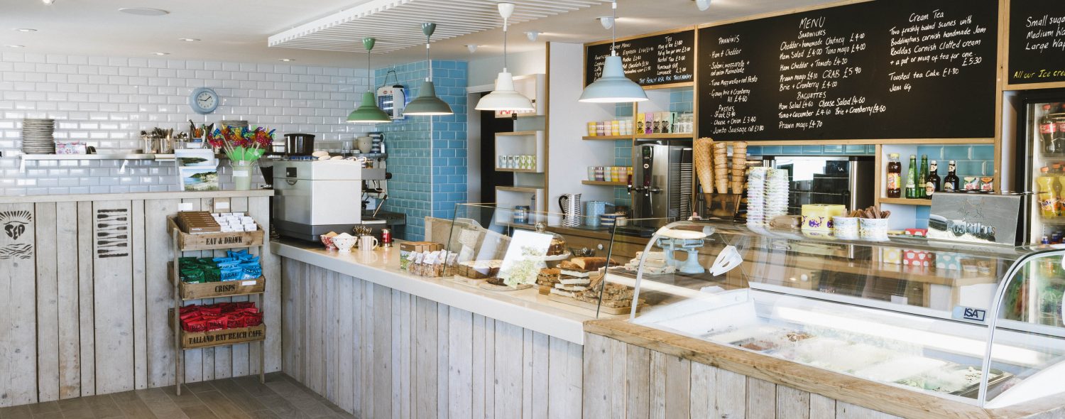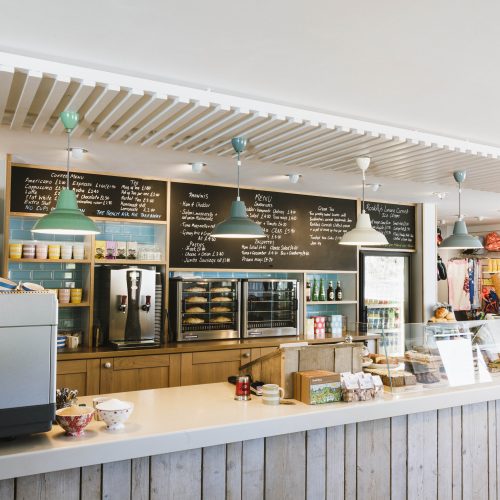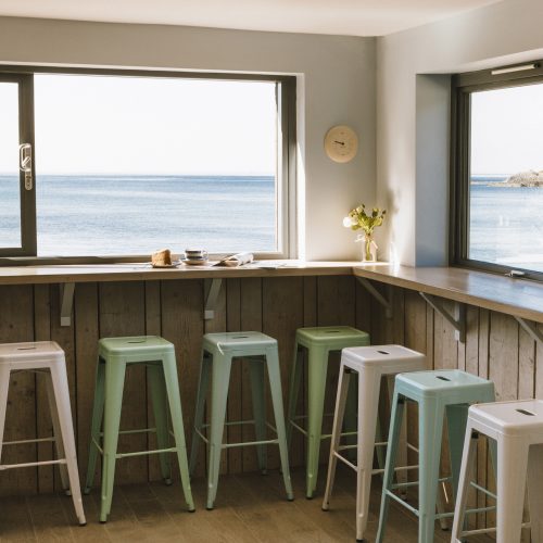 The Talland Bay Beach Cafe is located in a secluded bay and offers a take away service together with an extensive exterior seating area. We were asked to maximise the seating numbers, to improve both the customer experience and service space within the cafe. By relocating the main counter we were able to introduce an eating shelf with high stools and add a small retail offering. We introduced a picture window to allow those seated at the eating shelf to benefit from the fantastic views whilst enjoying their coffee. Using the same materials and colours to both inside and outside created a connection between the spaces.