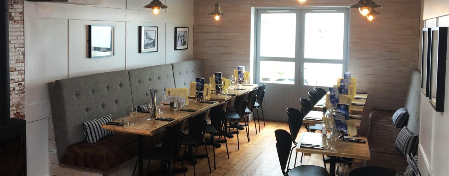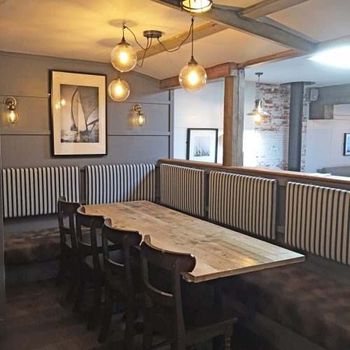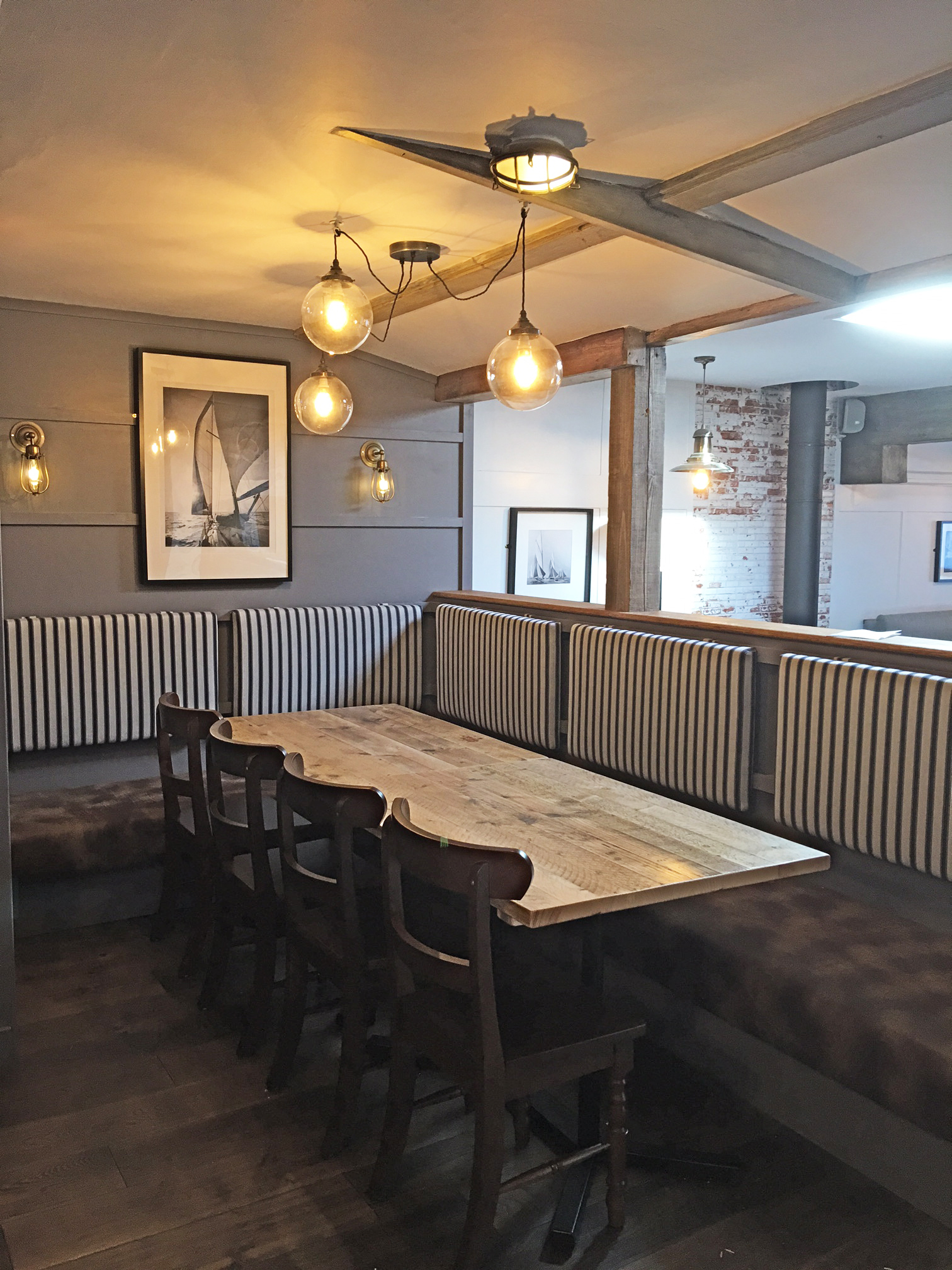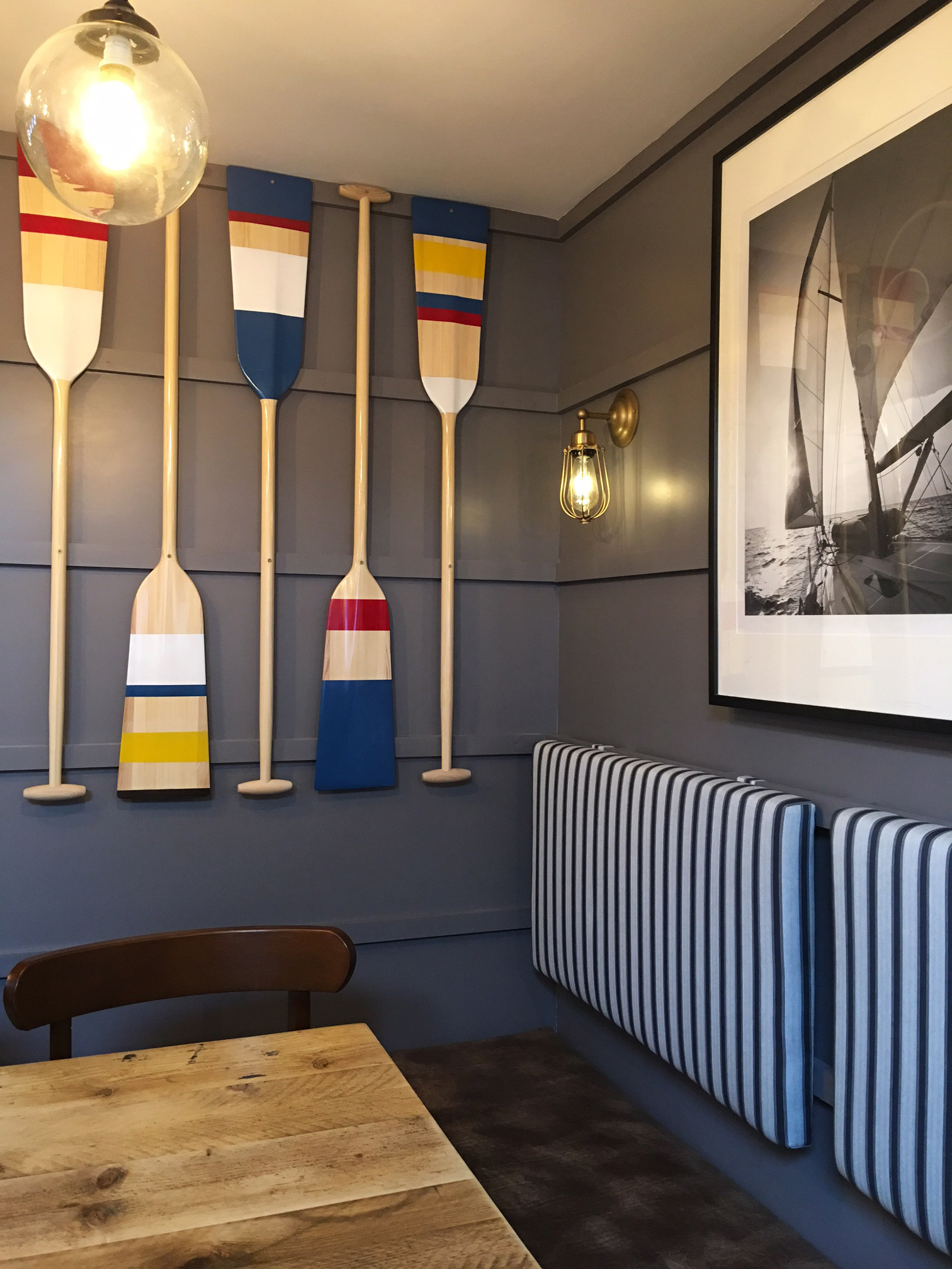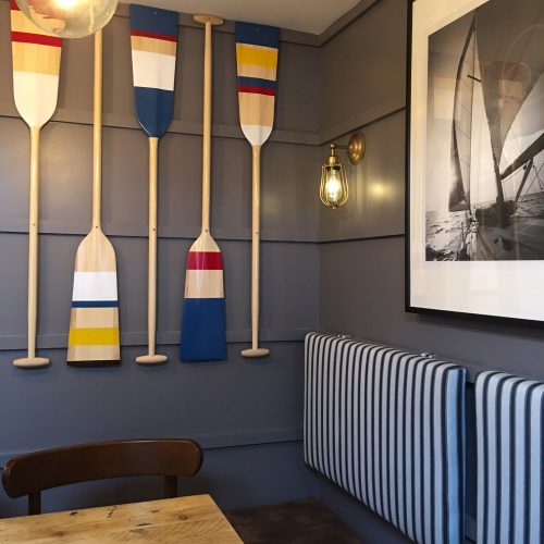 The Sloop Inn at Bantham is a historic 14th Century Inn, located in the South Hams area of outstanding natural beauty. Our vision was to incorporate local history steeped in tradition and the folklore into the Interior design. We achieved this through the use of reclaimed materials, using a neutral colour palette and strong imagery, with large black and white photography of Bantham. We also mixed elements of marine life, taking inspiration from mythical sea creatures, tall ships and sailing references. The nautical theme provided a calm, stylish and relaxed space to enjoy good quality fresh sea food in an honest, coastal environment.